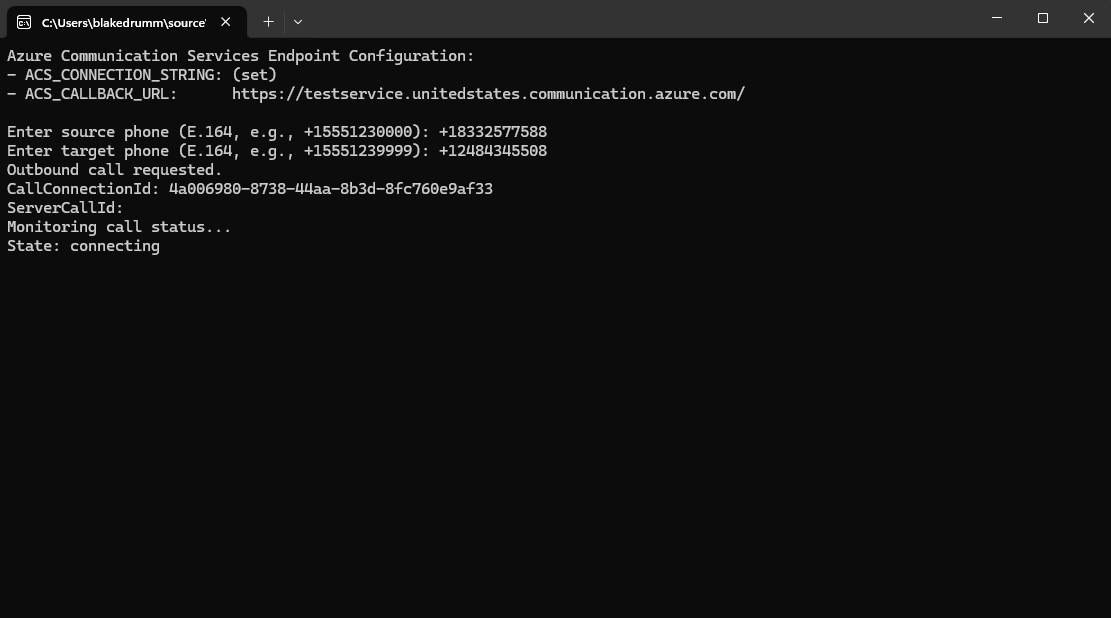 To streamline that process, I created a small C# console application that uses the ACS Call Automation API to place a call from an ACS-owned phone number to any valid target phone number. This post provides an overview of how the tool works, why it exists, and what to know when using ACS programmatically for calling.